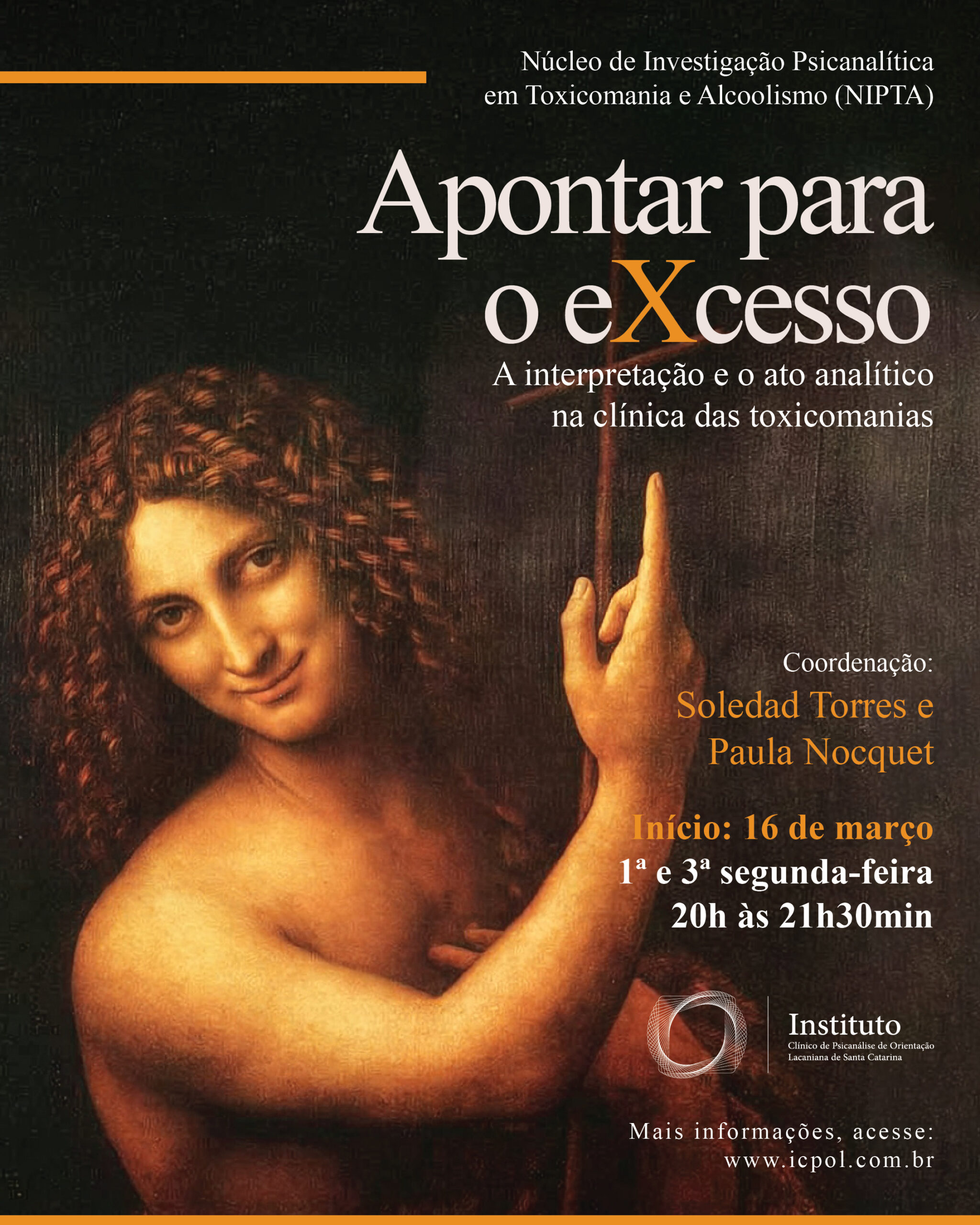 Após um ano de pesquisa em torno do livro Clínica do excesso: derivas pulsionais e soluções sintomáticas na psicopatologia contemporânea de Domenico Cosenza, o Núcleo de Investigação Psicanalítica em Toxicomania e Alcoolismo (NIPTA), que pertence a Rede TyA do Campo Freudiano, propõe uma continuidade nesse trabalho, tomando como fio condutor a questão das intervenções do analista nessa clínica. Se como afirma Miller, “na cura do toxicômano, se fala de desmame e não de castração. Acredita-se poder efetuar essa operação de renúncia à droga pela fala, ou o desmame da – ou das substâncias tóxicas é a condição, prévia, da cura pela palavra?”[1]. Se a toxicomania se caracteriza por um modo de gozo que prescinde do corpo do Outro e se articula a um rechaço do inconsciente, que lugar resta para a interpretação e para o ato analítico? Como apostar no inconsciente?
